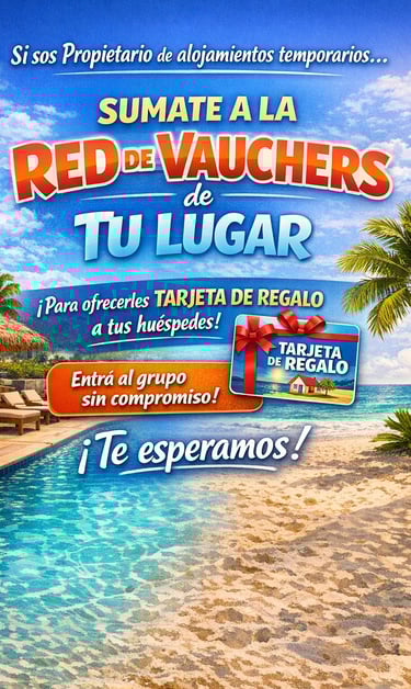 Cada propietario participante puede obsequiar una TARJETA DE REGALO (Voucher) a sus inquilinos como valor agregado por su estadía.